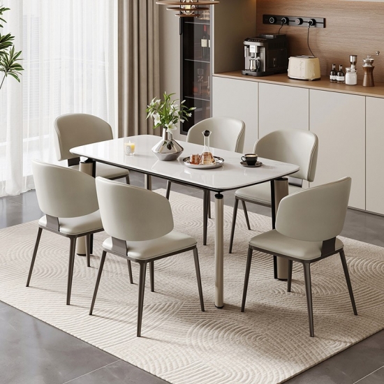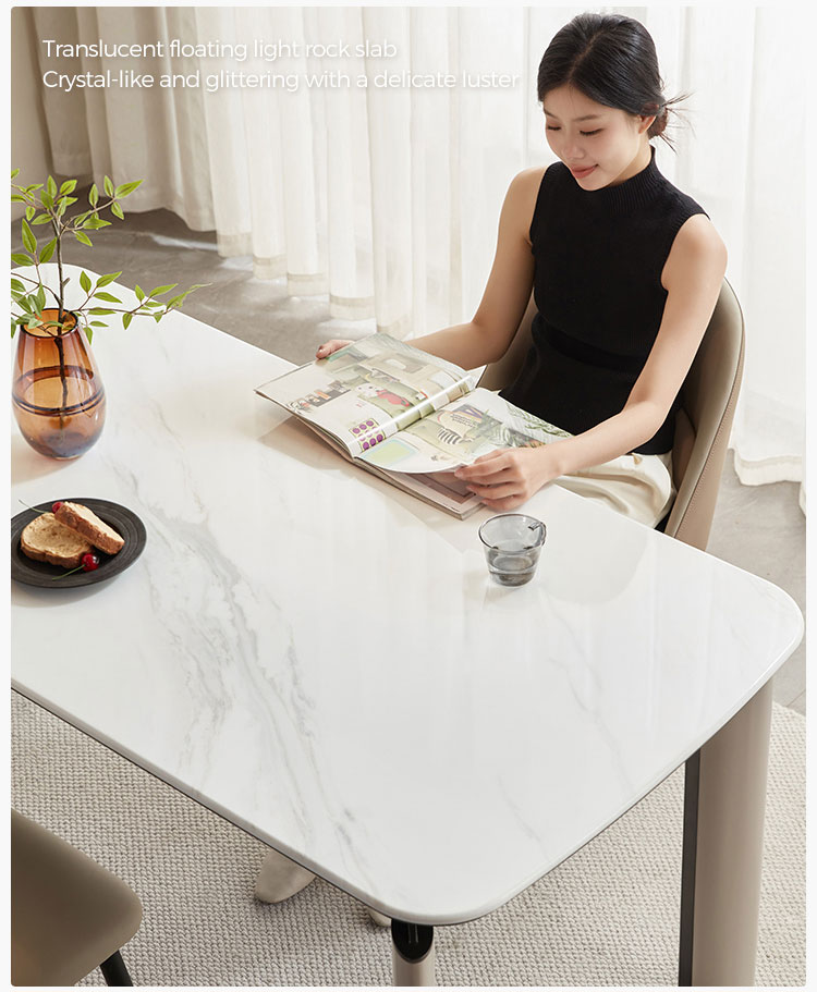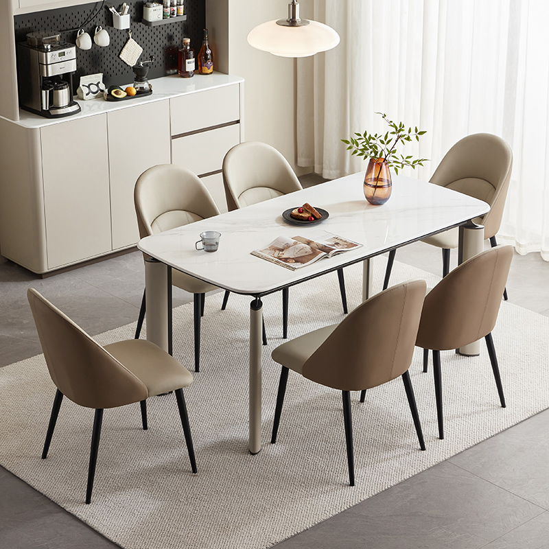 ضوء الفاخرة روك لوحة طاولة طعام كرسي طاولة منزلية حديثة بسيطة كرسي طاولة عائلي مستطيل لائحة ساق فولاذية قوية