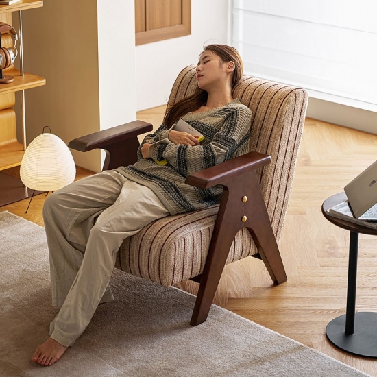 صُمم هذا الكرسي العصري ليمنحك راحة تدوم طويلاً وأناقة خالدة، فهو يجمع بين هيكل متين من الخشب الصلب وتنجيد فاخر من القماش. يوفر المقعد ومسند الظهر المبطنان بسخاء دعماً استثنائياً، مما يجعله المكان الأمثل للقراءة أو الاسترخاء في غرفة المعيشة. ينسجم تصميمه متعدد الاستخدامات بسلاسة مع مختلف أنماط الديكور، من الريفي إلى العصري. إضافة متينة وأنيقة لأي منزل.
