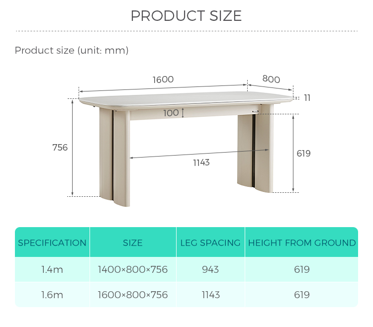 الأبعاد: 1600 مم (طول) × 800 مم (عرض) × 756 مم (ارتفاع) - مثالية لـ 4-6 مقاعد