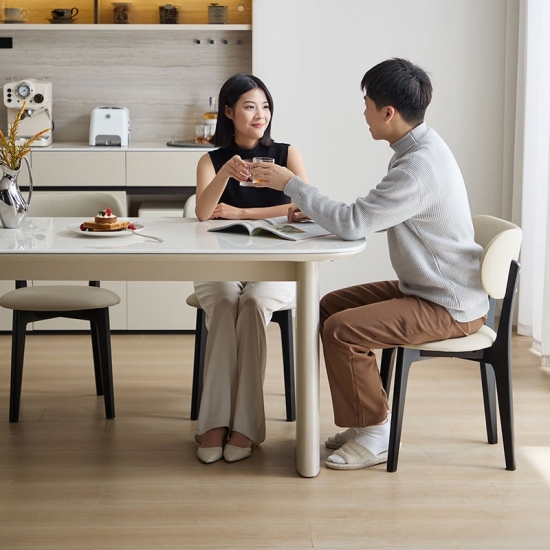 مثالية لغرف الطعام الصغيرة والمتوسطة الحجم، أو الشقق، أو المطابخ المفتوحة، حيث توازن هذه الطاولة بين الوظيفة والجاذبية الجمالية.