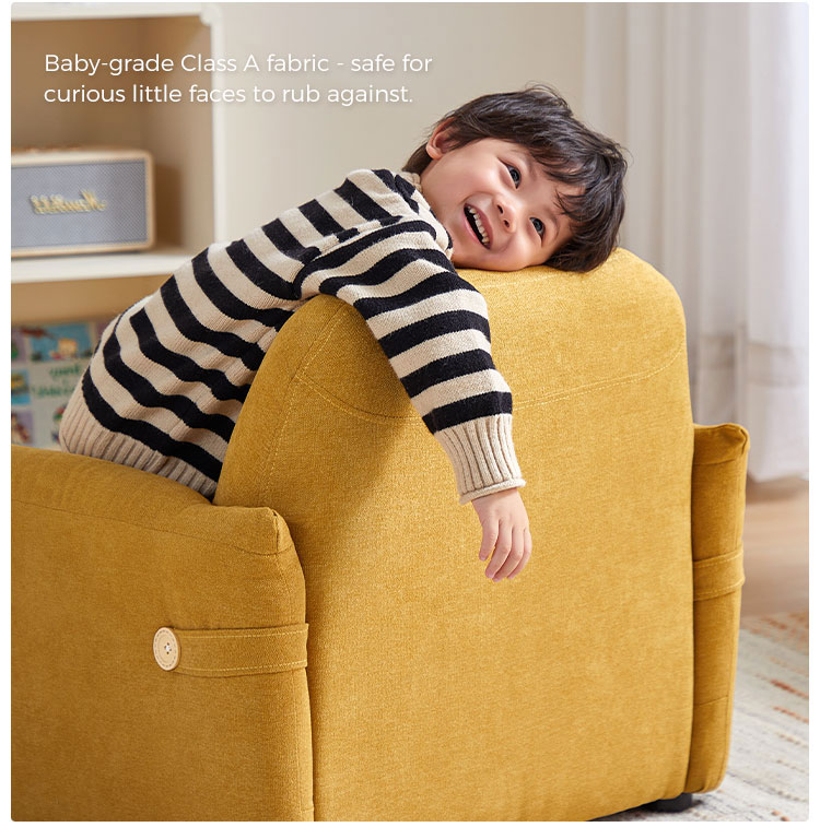 امنحي طفلكِ مقعده الخاص "الخاص بالكبار" مع كرسي الأريكة القماشي الرائع للأطفال. يجمع هذا الكرسي الصغير بين التصميم اللطيف والمريح والعملية التي يحتاجها الآباء. سواء اخترتِ اللون النابض بالحياة أصفر خردلي أو مهدئ اللوز الأبيض بفضل قماشها سهل التنظيف وإطارها المتين، تُعدّ هذه الكرسي إضافة مثالية لأي غرفة ألعاب أو غرفة نوم. إنها ليست مجرد كرسي، بل هي ركنهم المفضل الجديد لقراءة القصص!