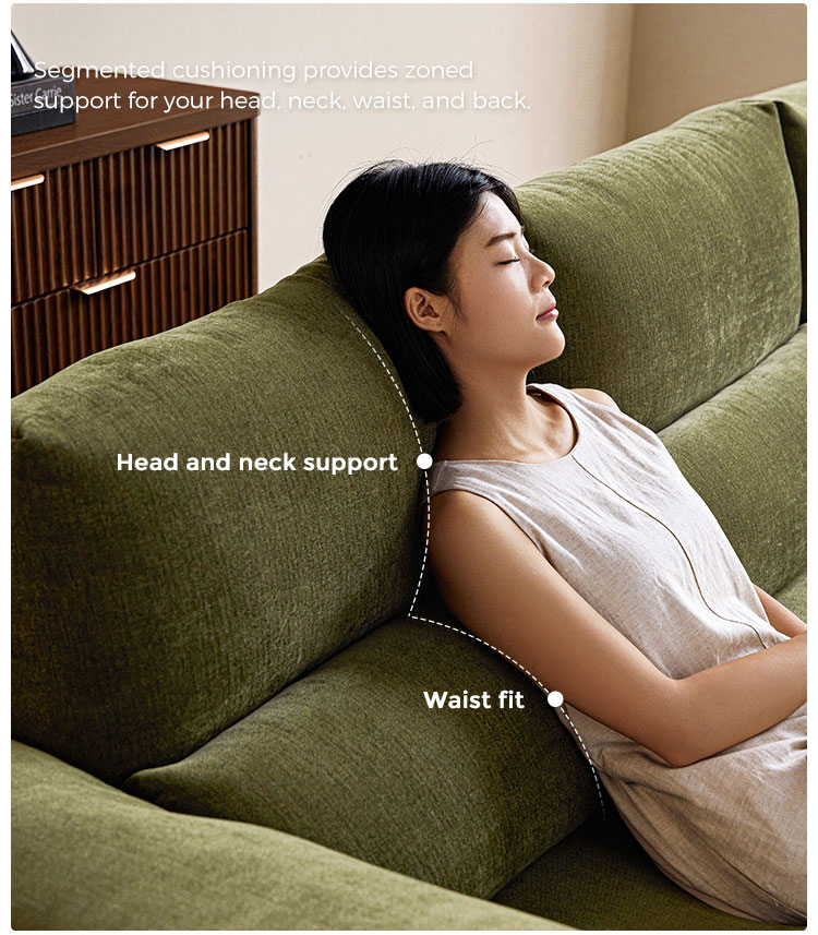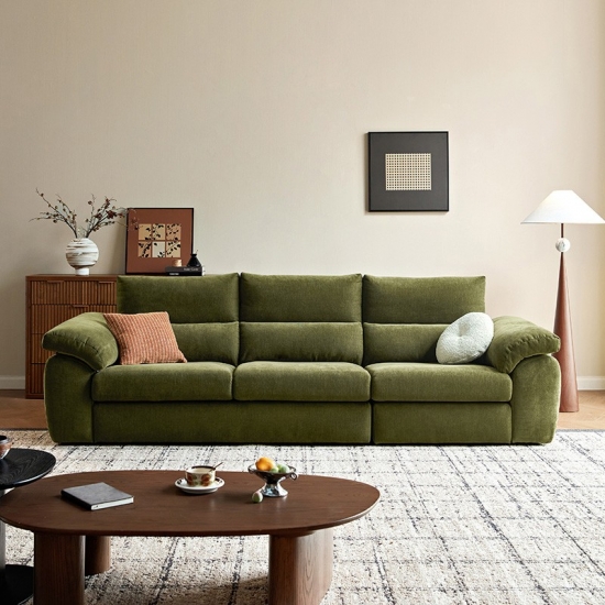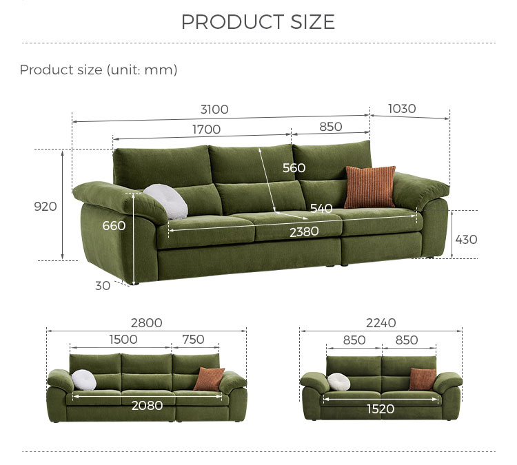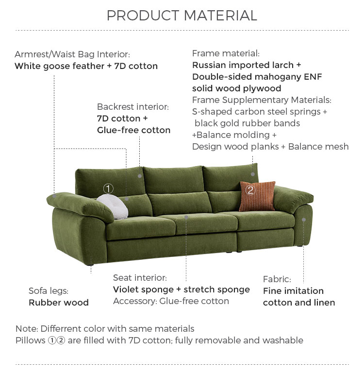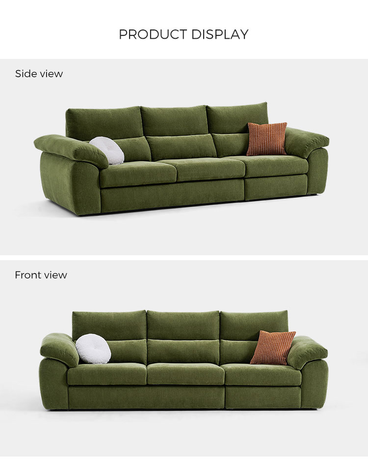 تنجيد قماشي عالي الجودة: مصنوع من قماش متين، سهل التنظيف، ناعم الملمس. صُممت هذه المادة لمقاومتها للتكتل والبهتان، مما يضمن بقاء الأريكة جميلة وجذابة لسنوات قادمة.