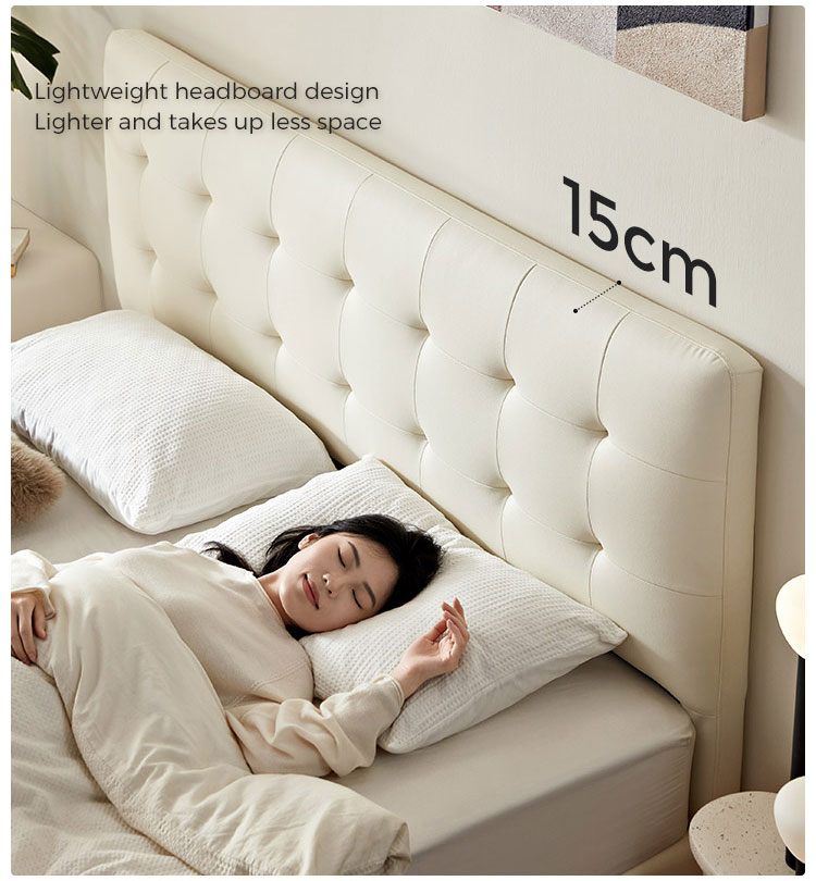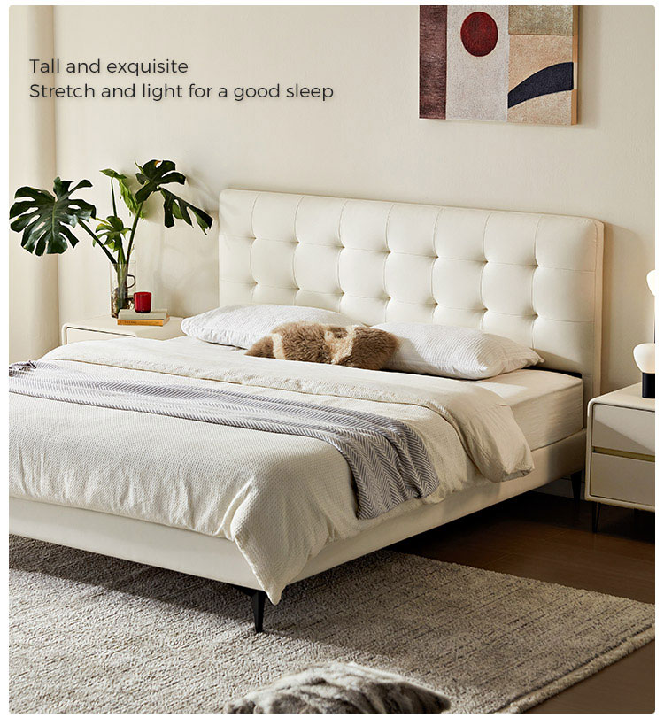 استمتع براحةٍ وراحةٍ لا مثيل لهما مع سريرنا المُنجّد باللون الأبيض الجبني. صُمّم هذا السرير ليكون القطعة الأساسية الهادئة في غرفة نومك، فهو يجمع بين الفخامة والرقيّ والجماليات العصرية الأنيقة.