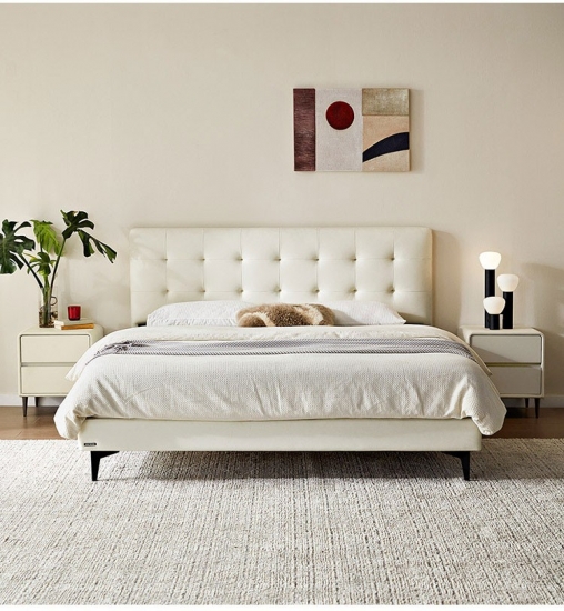 7سرير جلدي تشيسترفيلد أبيض من LINSY BC067-A1