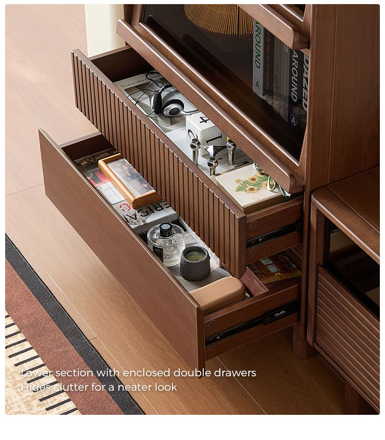 تصميم عملي: صُمم ليكون متعدد الاستخدامات، فهو يوفر مساحة تخزين مخفية واسعة خلف أبواب وأدراج مُركبة بسلاسة.