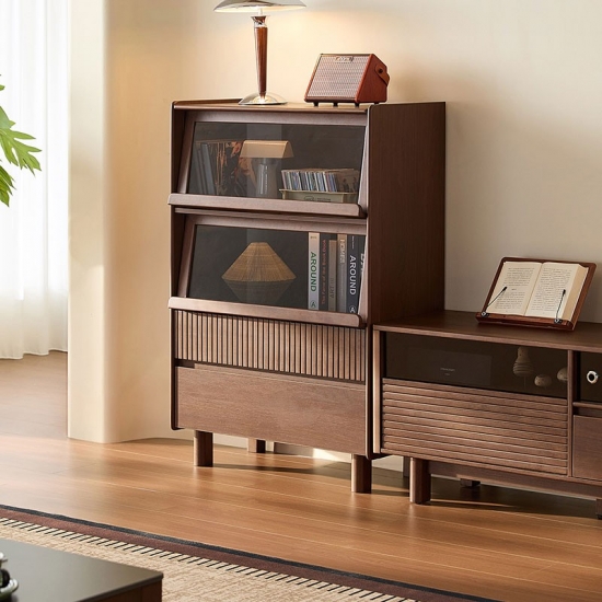 خزانة جانبية أنيقة من خشب الجوز من لينسي، خزانة تخزين لغرفة المعيشة UY3M-A |