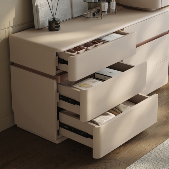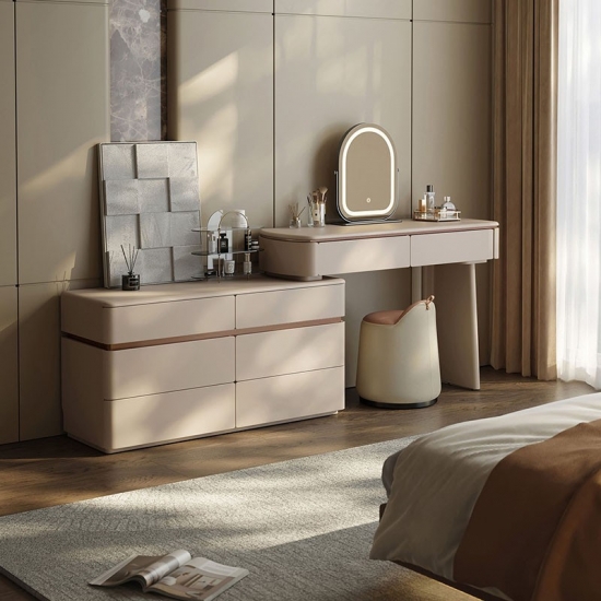ارتقِ بجمال غرفة نومك بقطعة تجمع بين الأناقة الإيطالية الخالدة والتصميم المبتكر الذي يوفر المساحة. خزانة الملابس القابلة للتمديد على الطراز الإيطالي ليست مجرد قطعة أثاث، بل هي تعبير عن الرقي وحل مثالي للمنزل العصري. صُممت هذه القطعة لمن يقدرون الجمال والعملية على حد سواء، فتتحول بسلاسة من خزانة ملابس فخمة بستة أدراج إلى ركن تجميل شخصي.