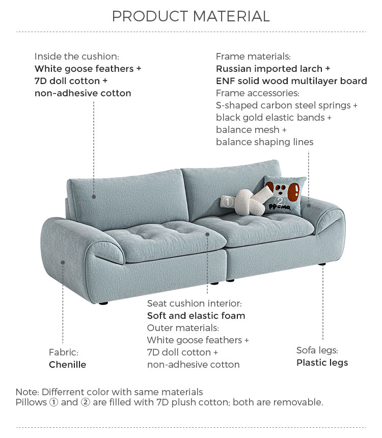 راحة فائقة: مزيج فاخر من الريش الطبيعي وقطن البولي بروبيلين عالي المرونة لتوفير تجربة جلوس "تشبه السحابة".