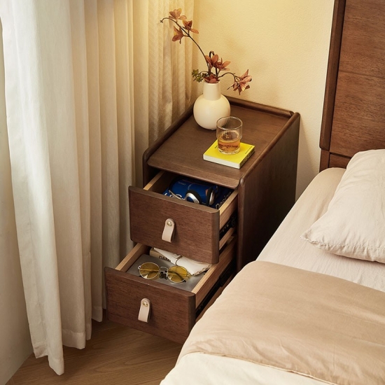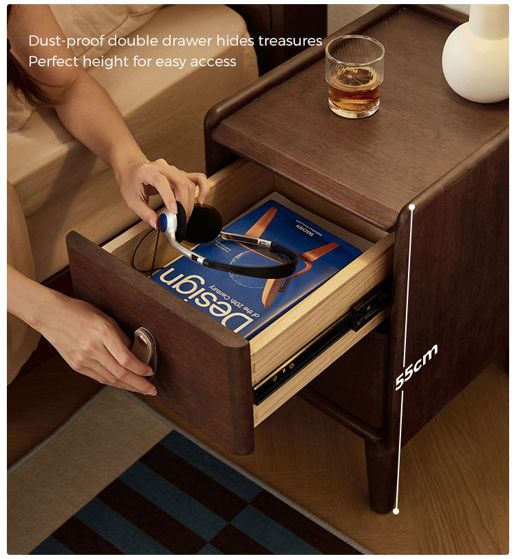 طاولة السرير الجانبية من LINSY، المصنوعة بأناقة، بلمسة نهائية من خشب الجوز الغني، تجمع بين الأناقة والعملية. حجمها الصغير المثالي يناسب سريرك بسلاسة، مما يُبقي أغراضك الأساسية في متناول يدك.