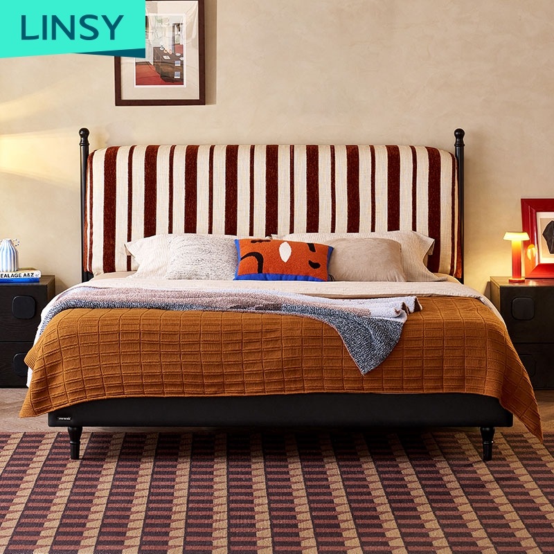 7سرير LINSY الحديث المصنوع من القماش بتصميم مخلب القطة باللون العنابي BC502-A