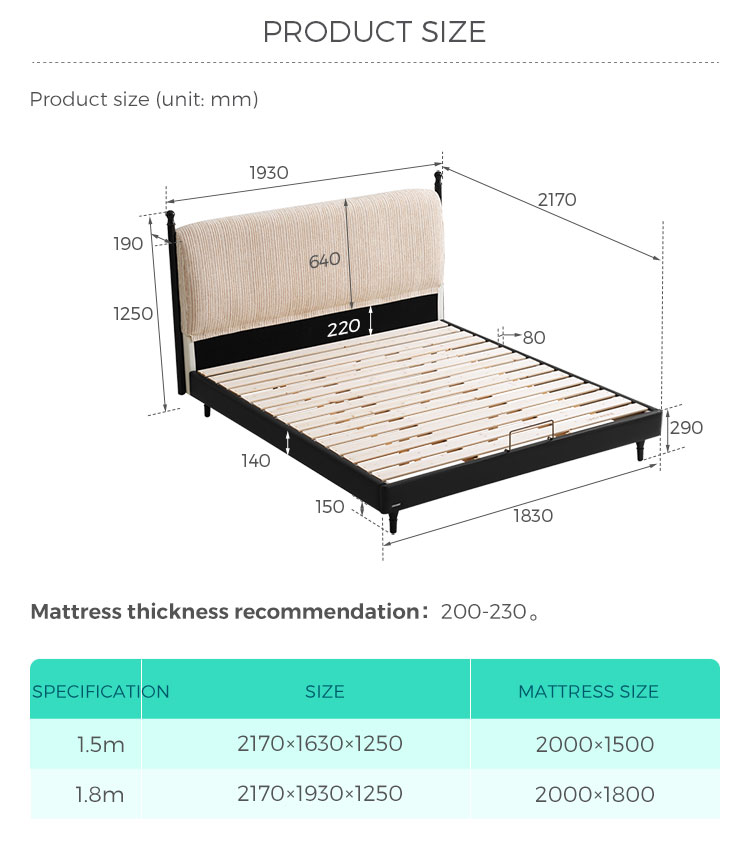 هيكل دعم قوي: تم تصميمه بقاعدة شرائحية قوية لدعم المرتبة بشكل أفضل ومتانة طويلة الأمد.