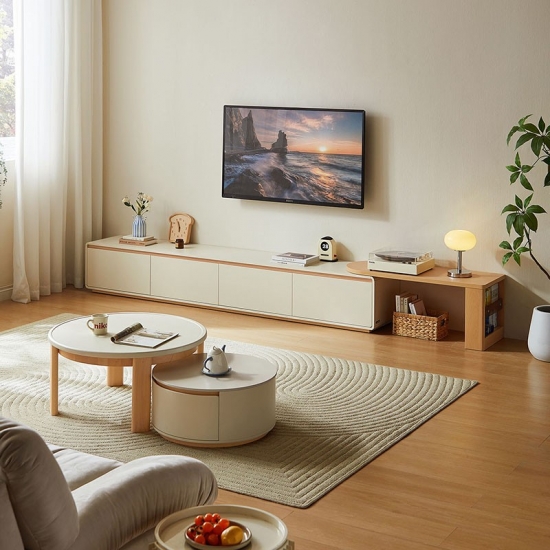 تتيح لك آلية التلسكوب السلسة تعديل العرض بسهولة، مما يوفر تصميمًا مرنًا يناسب أي مساحة. كما تحافظ إدارة الكابلات المدمجة ومساحات التخزين الواسعة على تنظيم الوسائط بعيدًا عن الأنظار. سواءً كنت تسكن في شقة صغيرة أو صالة واسعة، فإن هذه الوحدة تتكيف مع احتياجاتك - أنيقة وعملية ومتناسقة دائمًا.