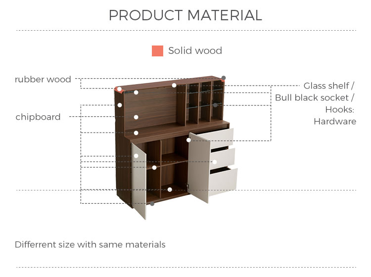 صُنعت الخزانة باستخدام مزيج حديث من المواد، حيث يعتمد هيكلها بشكل أساسي على ألواح متينة، بينما تم تشطيب أسطحها بألواح مقاومة للحريق وآمنة. وهذا يضمن لها عمرًا طويلًا وراحة بال تامة.