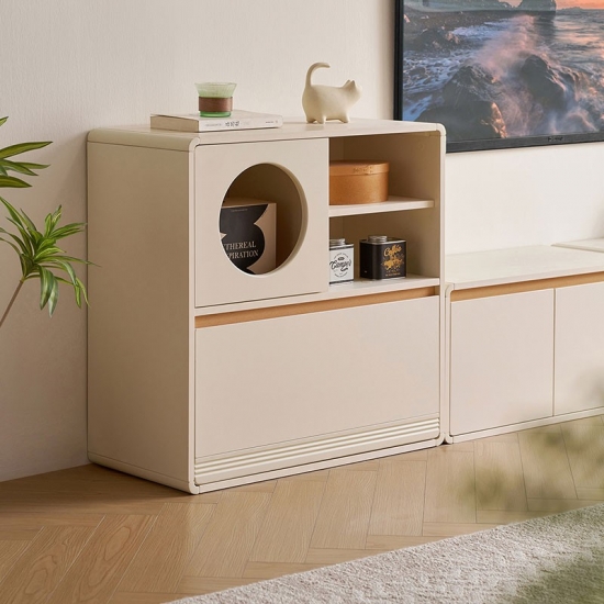 تصميم عملي: صُمم ليكون متعدد الاستخدامات، فهو يوفر مساحة تخزين مخفية واسعة خلف أبواب وأدراج مُركبة بسلاسة.