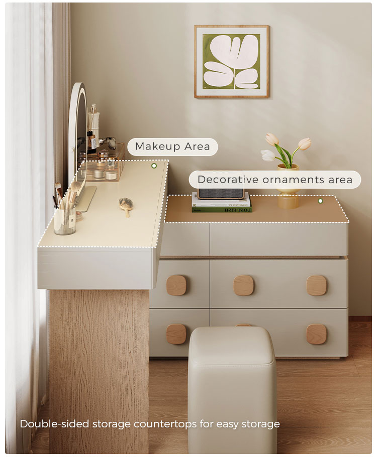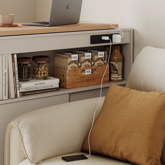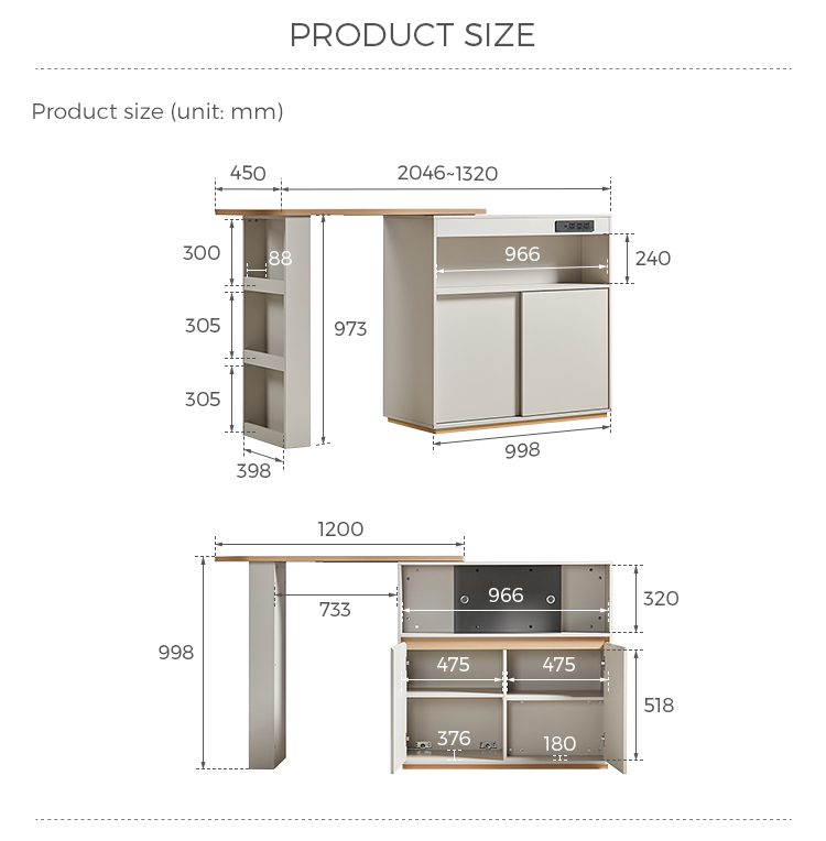 ٢. سطح علوي مزدوج الوظائف: سطح مقاوم للماء ولامع لخلط المشروبات. منطقة مدمجة من الرخام أو الزجاج المقسّى لتبريد الزجاجات.