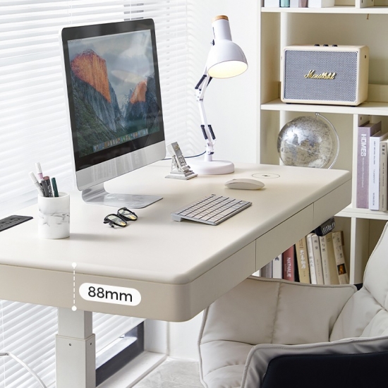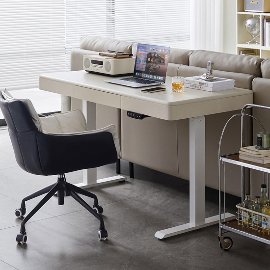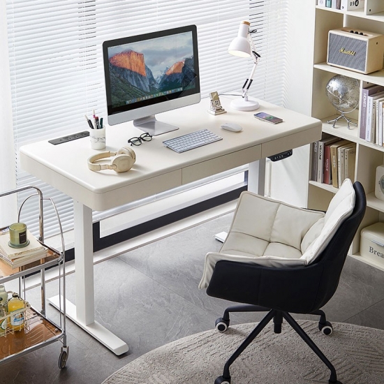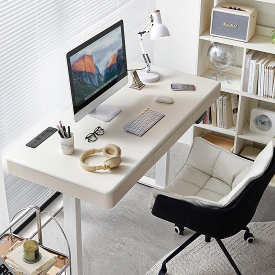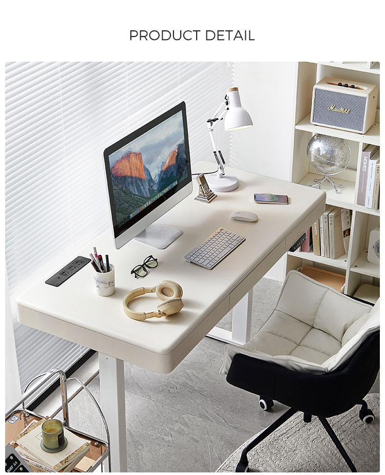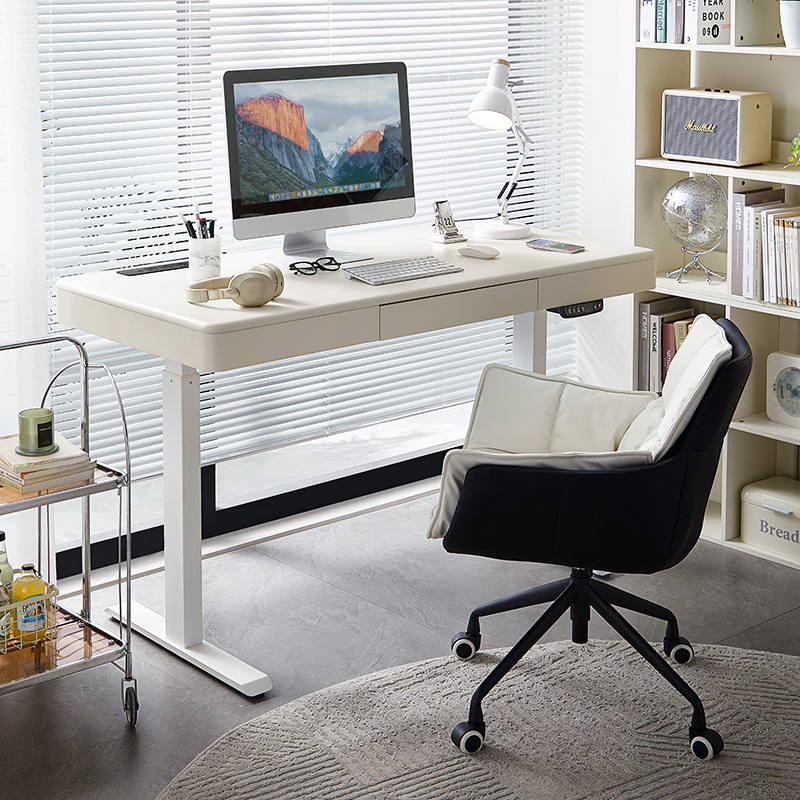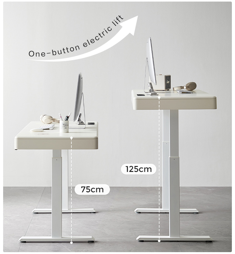 غيّر مساحة عملك مع مكتبنا الكهربائي الأبيض الأنيق القائم، المصمم للإنتاجية والراحة والجماليات العصرية. يتميز هذا المكتب بنظام رفع آلي هادئ، مما يتيح لك التبديل بسهولة بين وضعيتي الجلوس والوقوف، مما يعزز وضعية عملك ويزيد من نشاطك طوال اليوم.