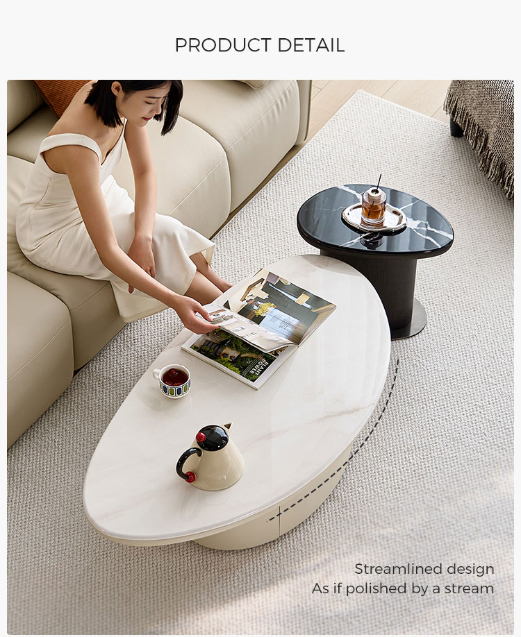 7طاولة قهوة منخفضة غير منتظمة من LINSY باللون الأبيض الحديث YU2L-A