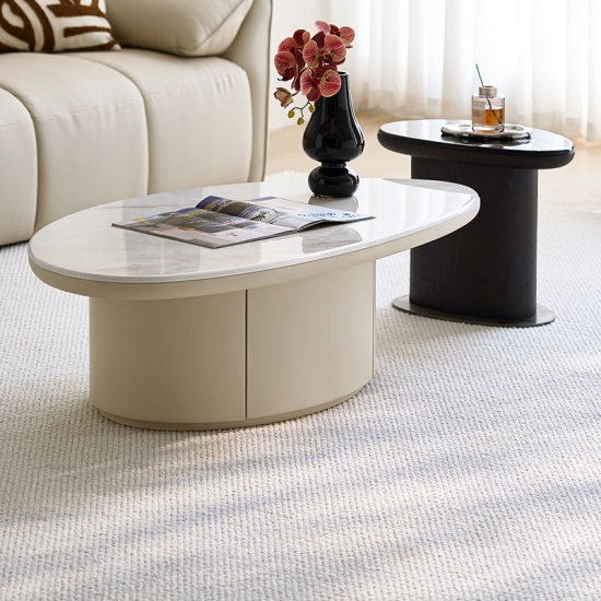 طاولة قهوة منخفضة غير منتظمة من LINSY باللون الأبيض الحديث YU2L-A |