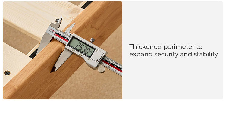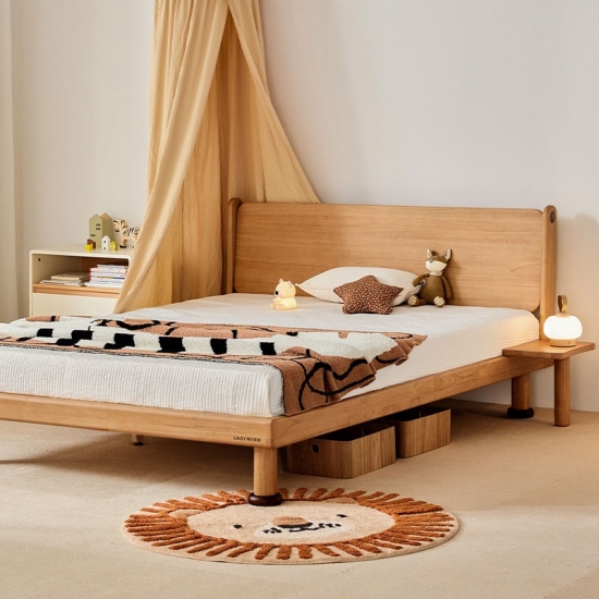 هيكل من الخشب الصلب الفاخر: مصنوع من خشب صلب متين ومستدام المصدر. خالٍ من المواد الكيميائية والتشطيبات الضارة، مما يضمن بيئة آمنة وصحية لطفلك.
