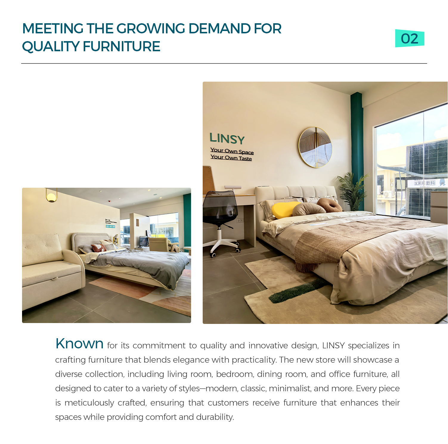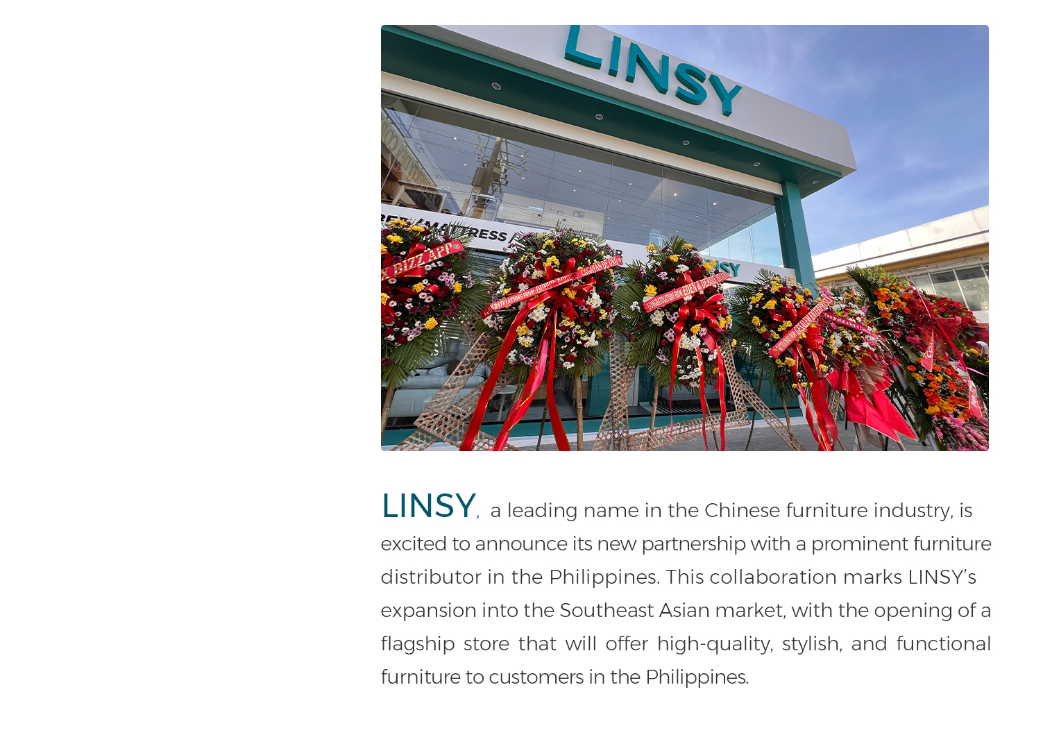 يسر شركة LINSY، وهي اسم رائد في صناعة الأثاث الصيني، أن تعلن عن شراكتها الجديدة مع أحد موزعي الأثاث البارزين في الفلبين. يمثل هذا التعاون توسع LINSY في سوق جنوب شرق آسيا، مع افتتاح متجر رئيسي سيقدم أثاثًا عالي الجودة وأنيقًا وعمليًا للعملاء في الفلبين.