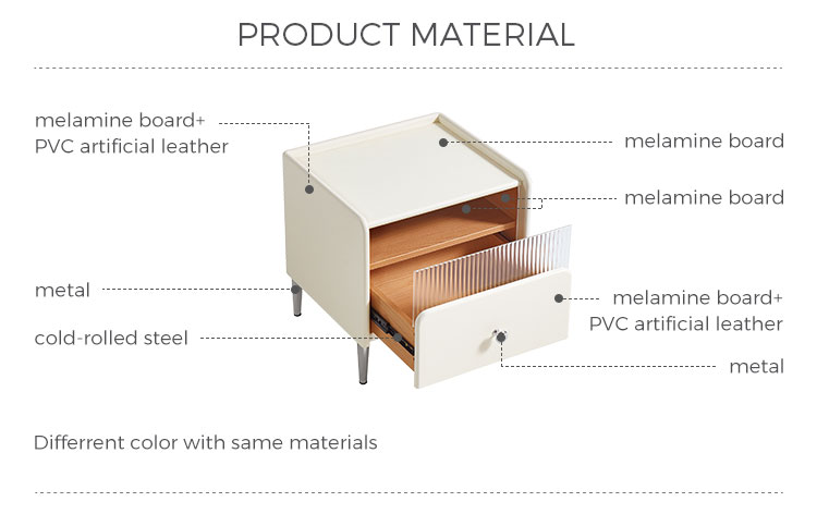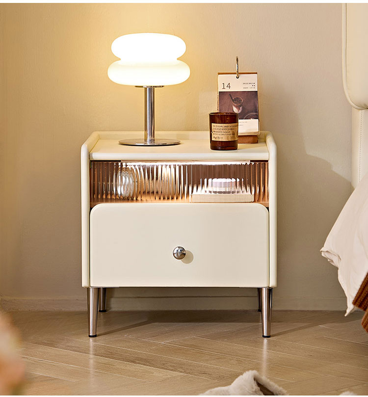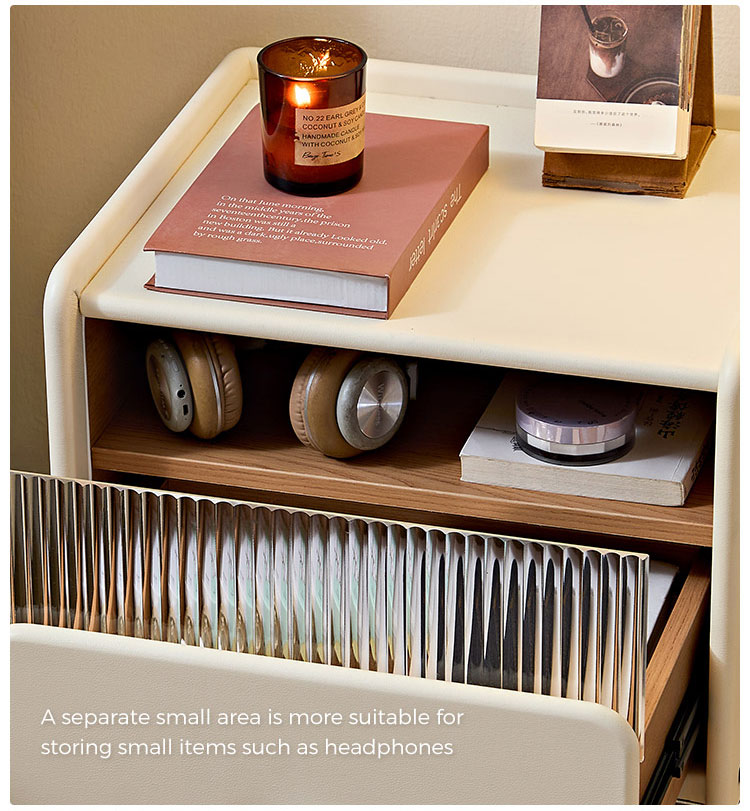 7أثاث غرفة نوم LINSY للتخزين، طاولة بجانب السرير باللون الأبيض الجبني مع درج TD139-A