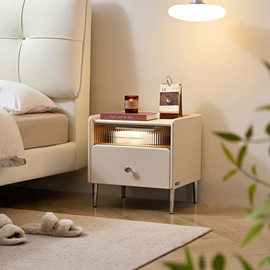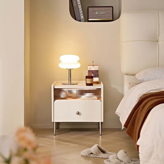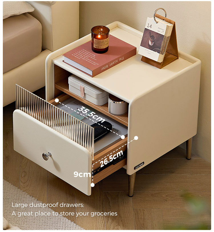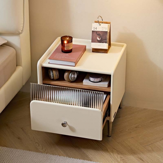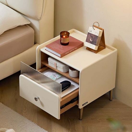 أثاث غرفة نوم LINSY للتخزين، طاولة بجانب السرير باللون الأبيض الجبني مع درج TD139-A |