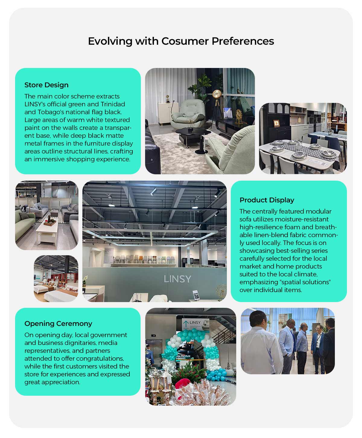On November 22, 2025, LINSY HomeFurniture officially landed in the Republic of Trinidad and Tobago, asouthern Caribbean island nation,with the grand opening of its firstflagship store in the capital. This marks a key step in LINSY's globalstrategic layout, aiming to bring a'fashionable, quality, and high-value"home lifestyle to consumers in Trinidad and Tobago and across the wider Caribbean region.