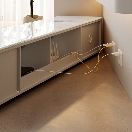 توفر هذه الطاولة البيضاء الأنيقة مساحة تخزين واسعة لتنظيم أجهزتك الإعلامية. تصميمها العصري الأنيق وعرضها البالغ مترين يوفران قاعدة مثالية لتلفزيونك ومساحة ترفيهية مرتبة. اطلع على التفاصيل أدناه.