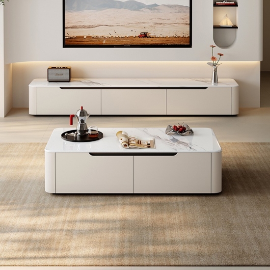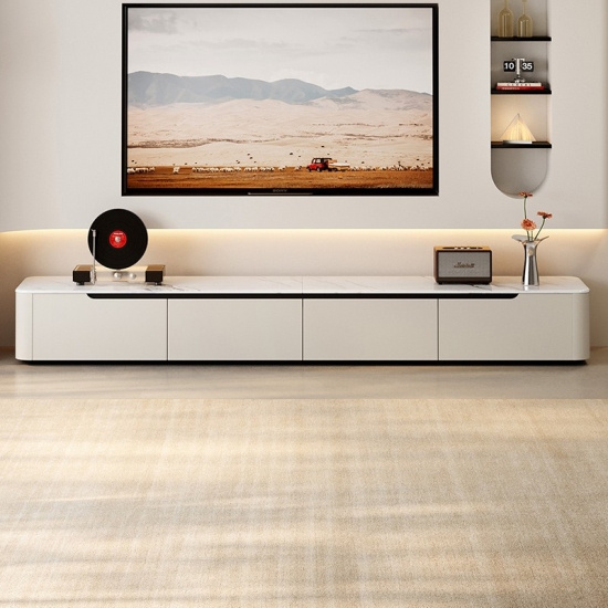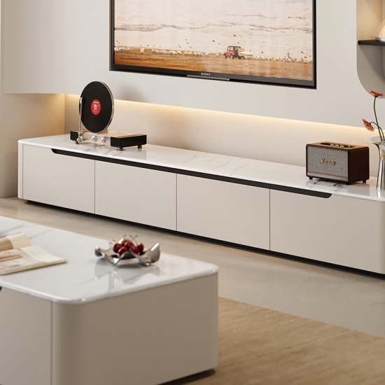 7حامل تلفزيون أنيق أبيض من لينسي مع مساحة تخزين واسعة RI4M-E
