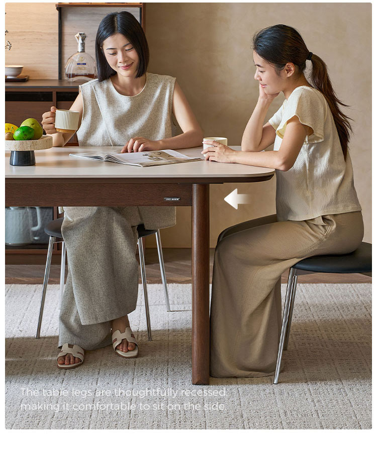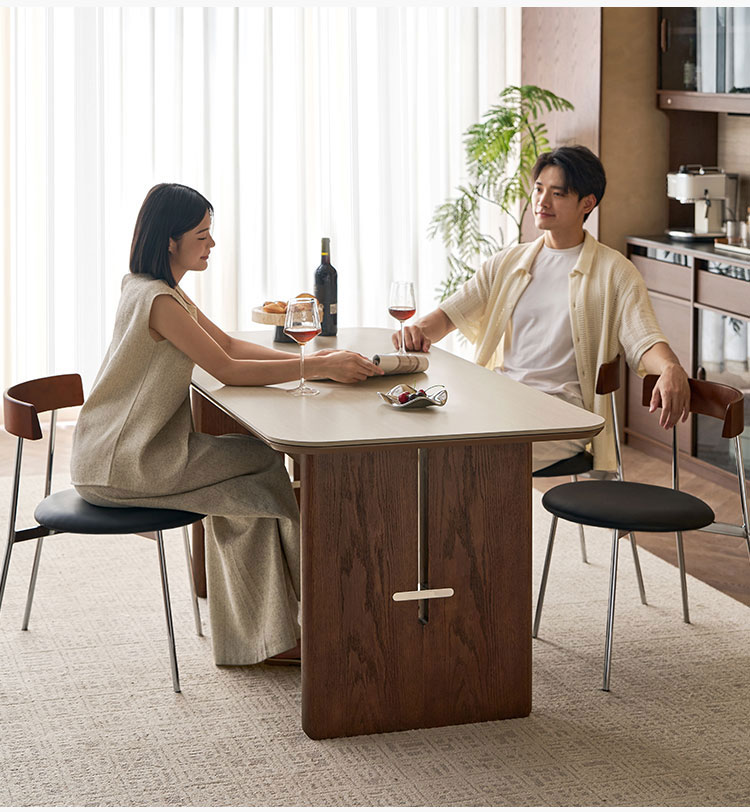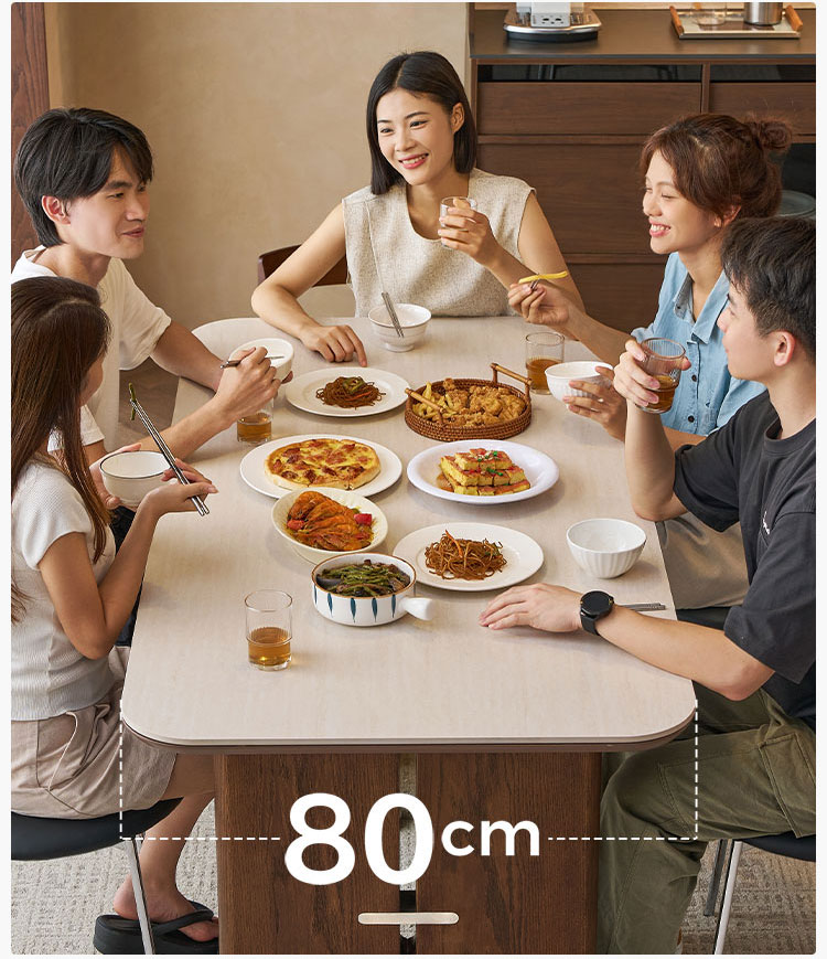 يوفر السطح السخي مساحة واسعة لكل شيء بدءًا من الوجبات العائلية اليومية وحتى استضافة الضيوف، مما يجعله مثاليًا لخلق جو متناغم لتناول الطعام.