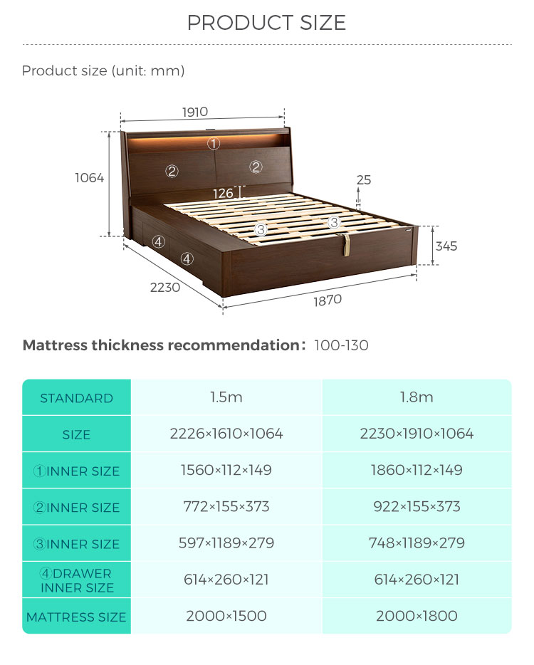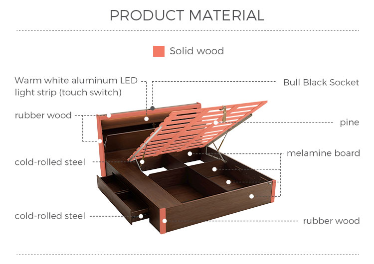 تتميز هذه الوحدة بقاعدة تخزين مدمجة عالية الارتفاع مزودة بآلية رفع هيدروليكية سلسة. يحوّل هذا النظام المبتكر سطح المرتبة بالكامل إلى مساحة تخزين واسعة يسهل الوصول إليها. وهو مثالي لتخزين الأغراض الكبيرة أو الموسمية أو قليلة الاستخدام، مثل أغطية السرير الإضافية، والبطانيات الشتوية، والوسائد، والحقائب، والملابس الموسمية، أو صناديق الذكريات، مما يوفر مساحة أرضية قيّمة ويرتب غرفة النوم.