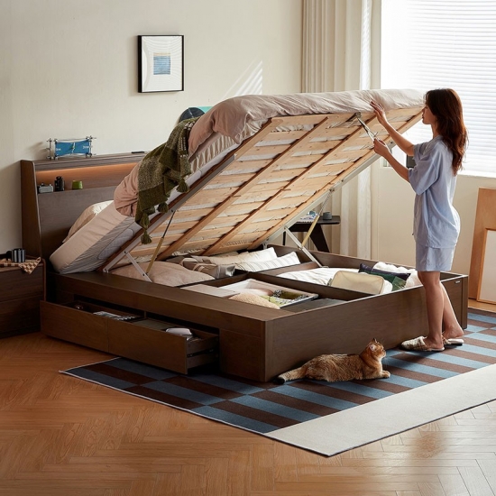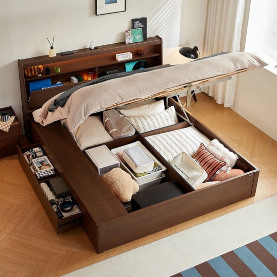 سرير تخزين هوائي من لينسي بلون الجوز UY2A-A |