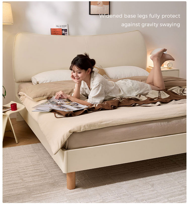 صُمم هذا السرير ليجمع بين الراحة والأناقة، حيث يوفر لوح الرأس المبطن بنعومة مكانًا مثاليًا للاسترخاء، بينما يضفي اللون الأبيض الناصع والتنجيد المصمم بعناية إحساسًا بالرحابة والإشراق على أي غرفة. يتميز هذا السرير بتصميمه الخالد والمتعدد الاستخدامات، فهو يمزج بين البساطة العصرية والراحة اليومية، ليخلق ملاذًا هادئًا ومريحًا للنوم.