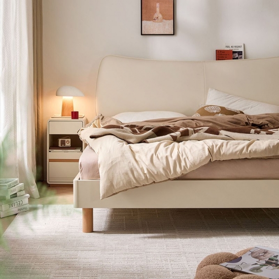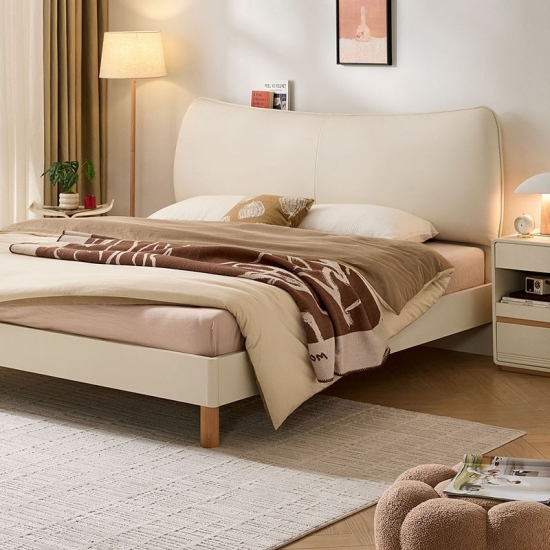 7سرير لينسي أبيض مُنجّد مع لوح أمامي من الجلد UD10A-A