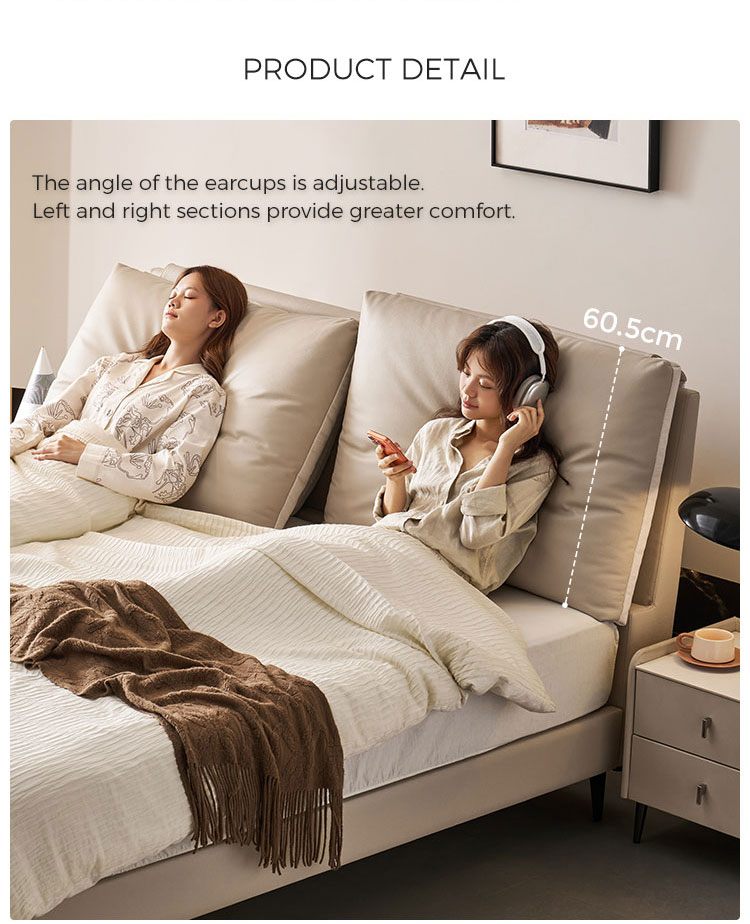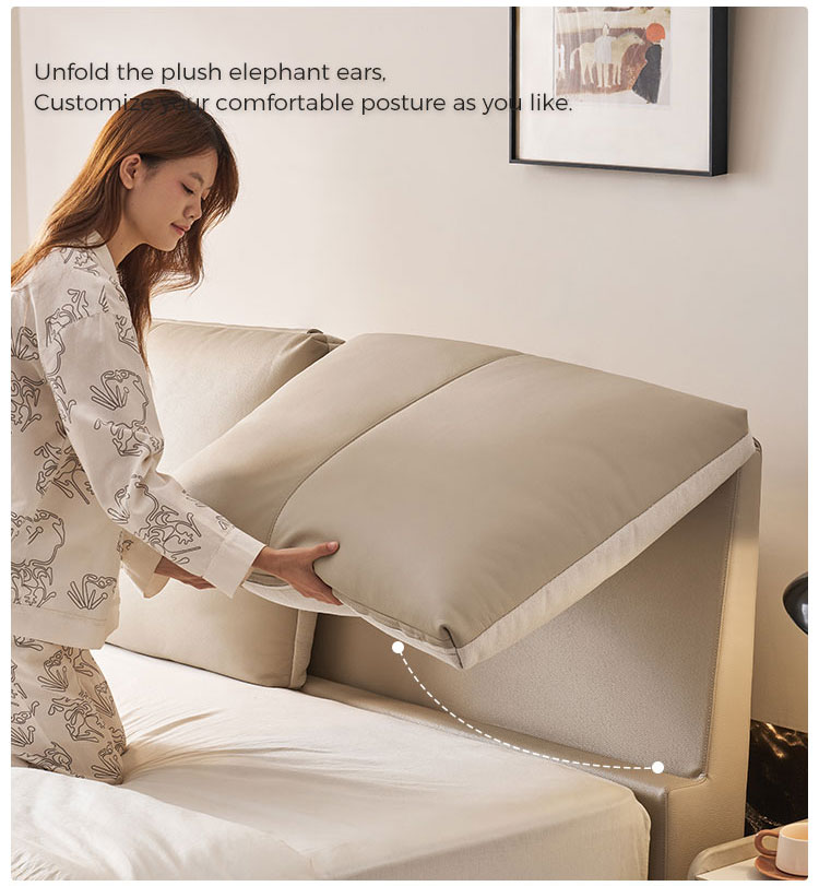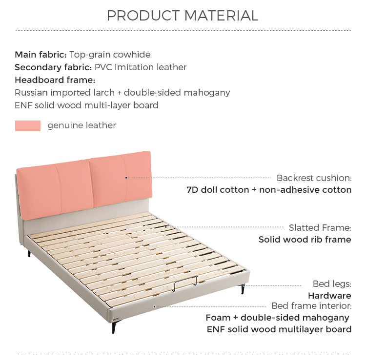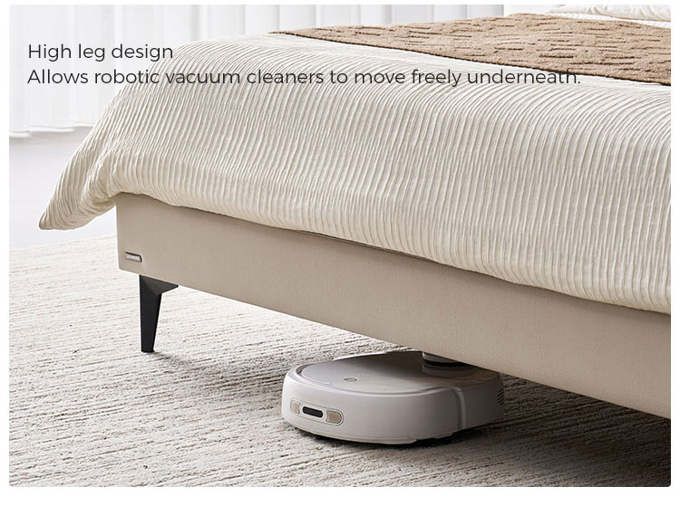 7سرير خشبي أنيق وعصري من الجلد باللون البيج PC589-A