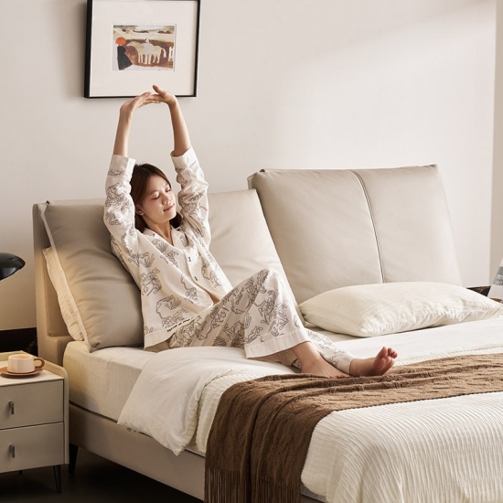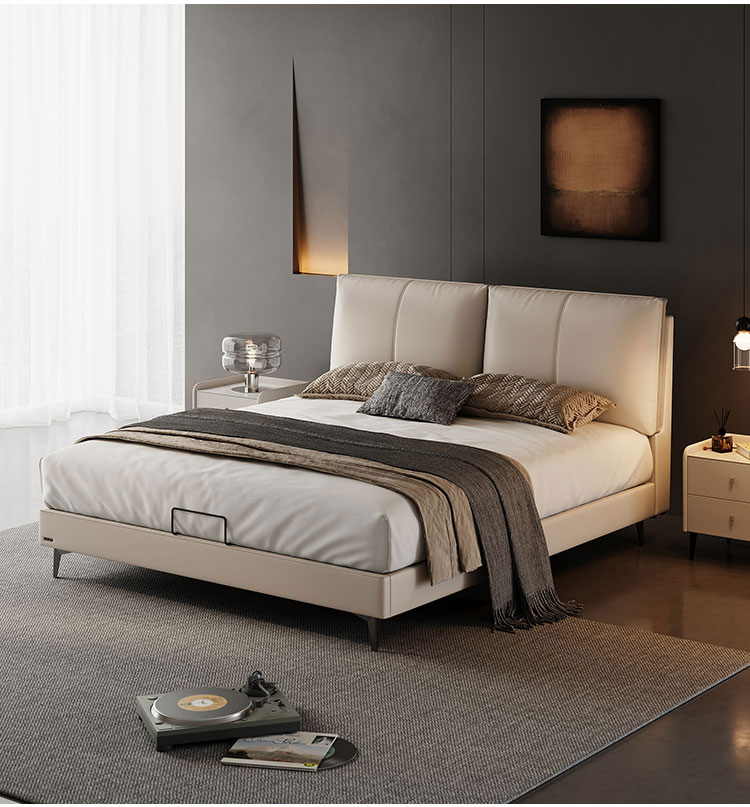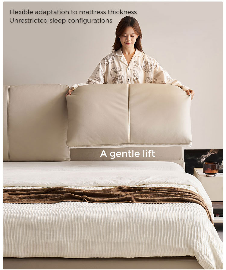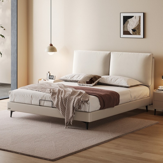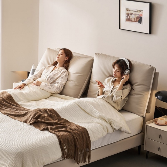 سرير خشبي أنيق وعصري من الجلد باللون البيج PC589-A |