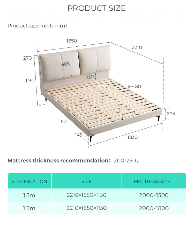 سرير عصري منجد بإطار من الجلد والخشب الصلب PC591-Aالتالى :