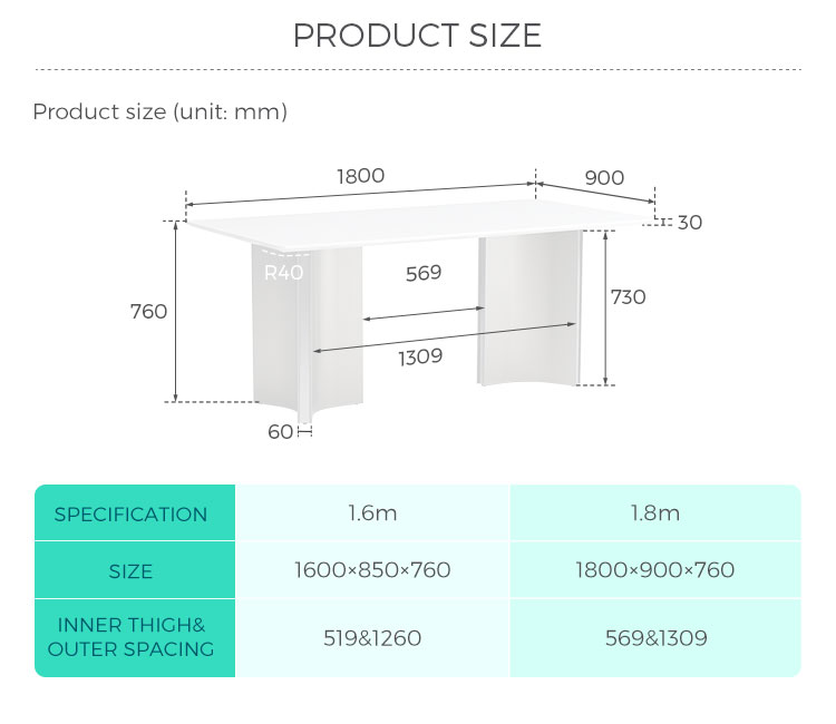 خيارات متعددة الأحجام: متوفر بطولين (1.6 متر و 1.8 متر) ليناسب مساحتك ومتطلبات الجلوس الخاصة بك تمامًا (6-8 أشخاص).