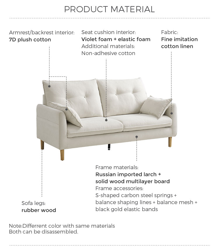 7كنبة قماشية بيضاء عصرية لشخصين، مريحة وبسيطة BS806-A
