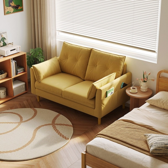 تفضلوا بالاطلاع على هذه الأريكة الثنائية، المثالية للشقق والاستوديوهات أو أي مساحة معيشة مريحة. صُممت أريكة BS806-A المدمجة ذات المقعدين لتجمع بين الأناقة والراحة دون المساومة على الجودة. صُنعت بعناية فائقة، وتتميز بإطار خشبي متين يدوم طويلاً، مدعوم بأرجل خشبية صلبة أنيقة تضفي عليها لمسة من الجمال الخالد والثبات. يتناسب لونها الدافئ مع مختلف أنماط الديكور.