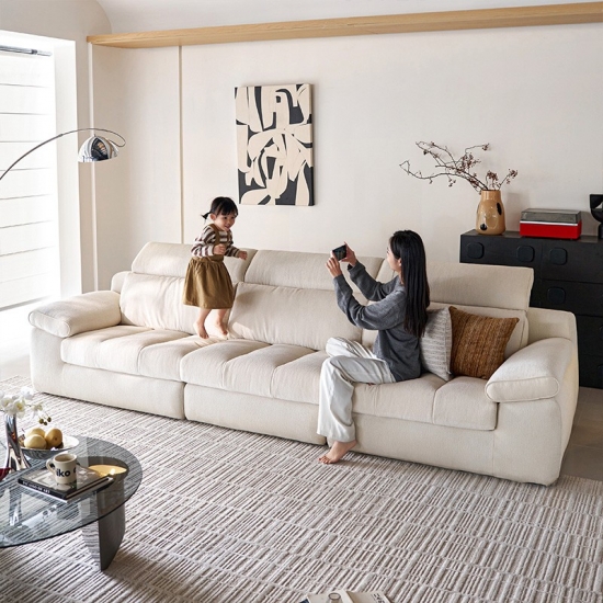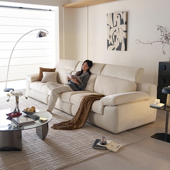 7أريكة عصرية من قماش الكتان الأبيض، بإطار داخلي من الخشب الصلب، BS813-A
