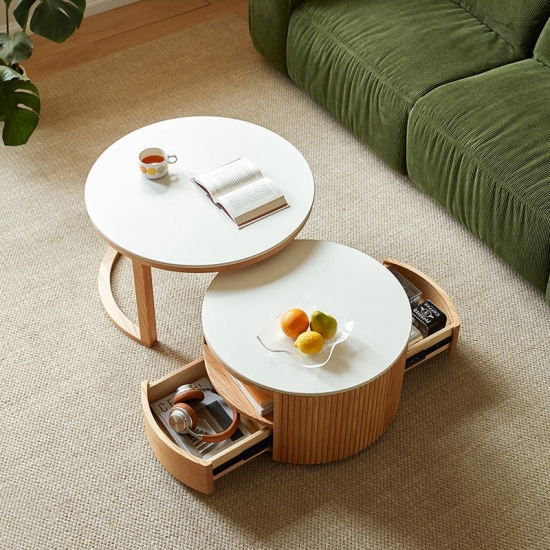 مرحبًا بكم في طاولة القهوة الجديدة تعد طاولة القهوة المستديرة قطعة مفيدة ومتعددة الاستخدامات لترسيخ منطقة الجلوس المحادثة بدون أي زوايا حادة ، إنه شكل أكثر أمانًا للصغار هذا واحد مع تصميم فريد يمكن أن تزين غرفة المعيشة الخاصة بك والمنزل مع جو دافئ.