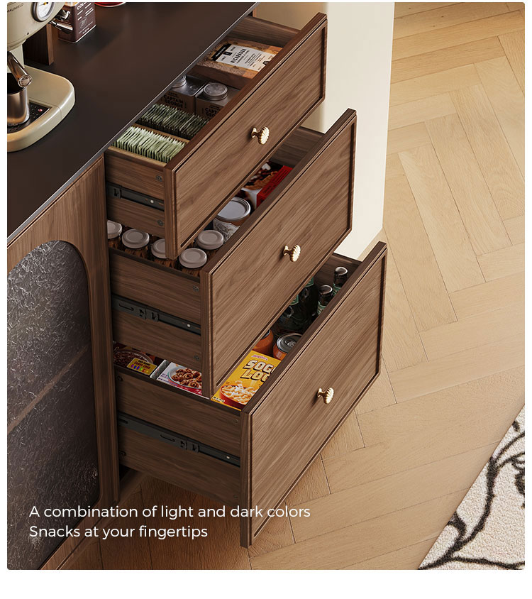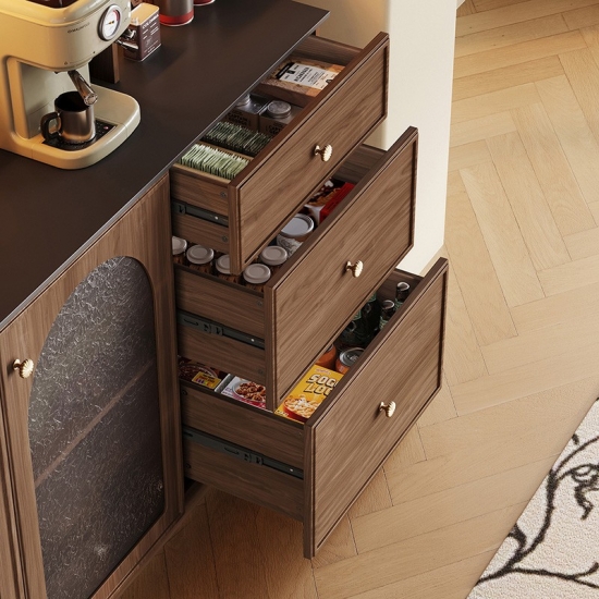 تخزين متعدد الاستخدامات: يتميز بمزيج من المقصورات ذات الواجهة الزجاجية والأدراج المتعددة الواسعة للتخزين المنظم والمنفصل.
