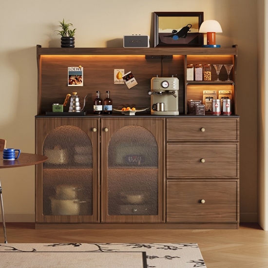 7خزانة متعددة الوظائف من خشب الجوز بطول 1.6 متر مع أدراج وأبواب زجاجية RC3T-A