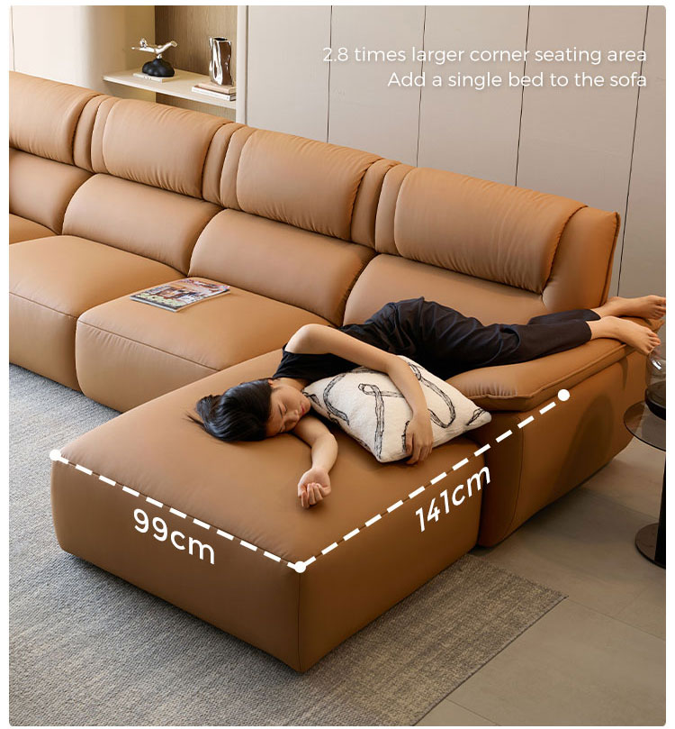 راحة فائقة وعملية فائقة: انغمس في وسائد عميقة وفخمة مدعومة بإطار متين. الجلد عالي الجودة ليس ناعمًا ومريحًا فحسب، بل يتميز أيضًا بمتانته الفائقة وسهولة تنظيفه، مما يضمن جمالًا يدوم طويلًا.