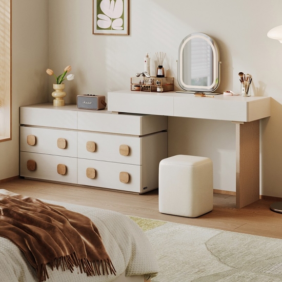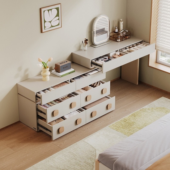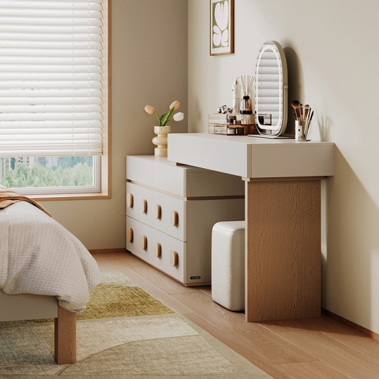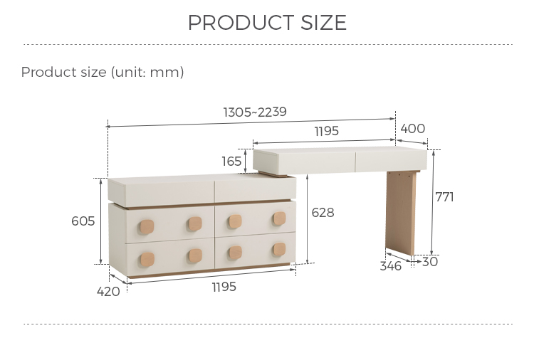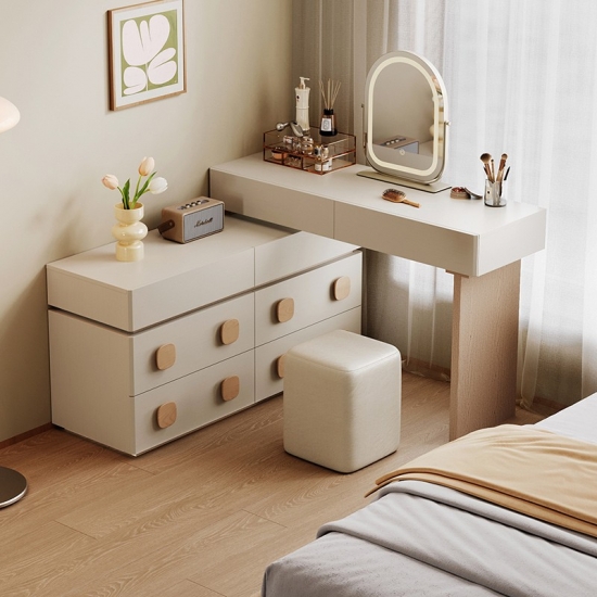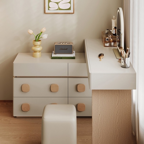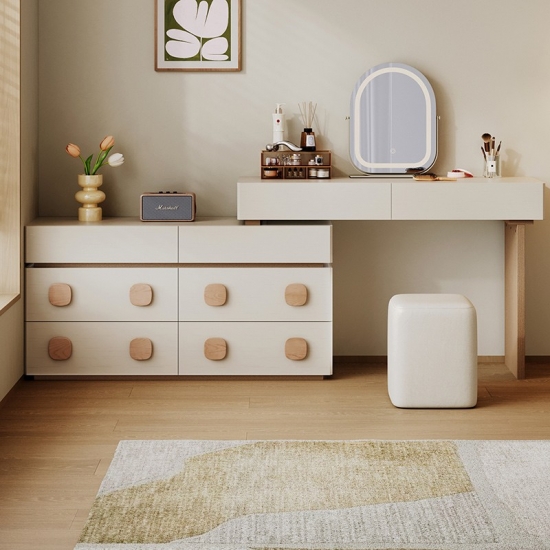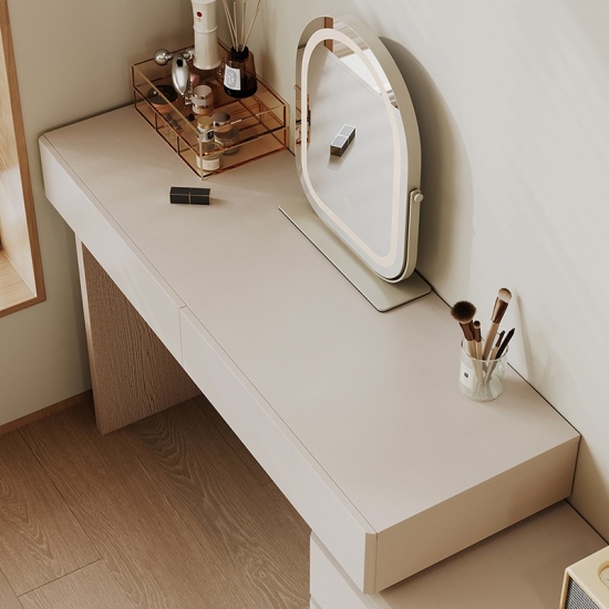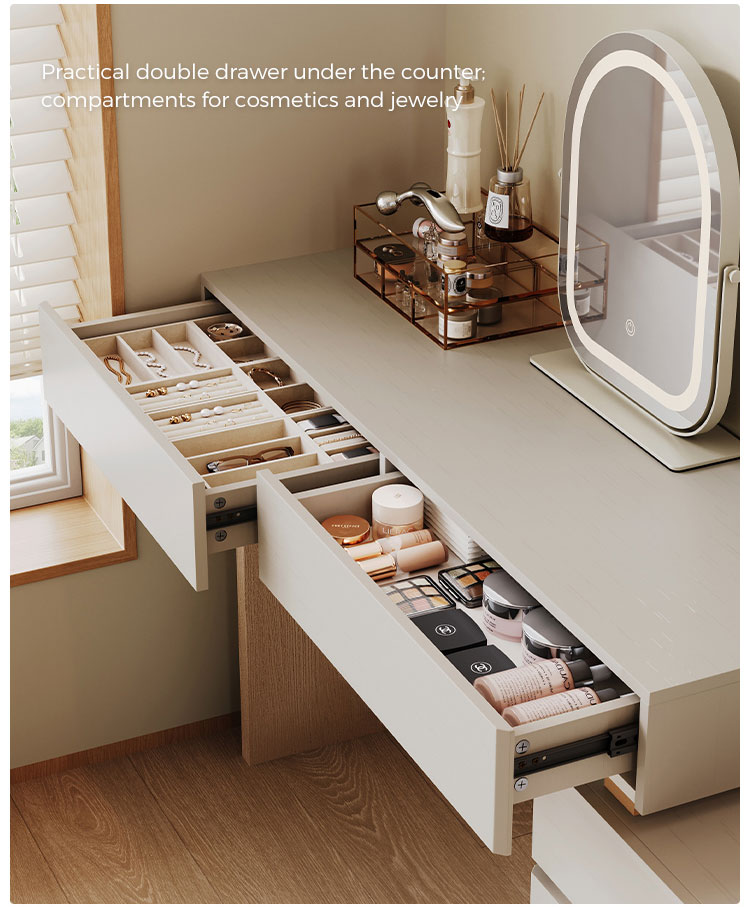 سطح مخصص للزينة: يوفر السطح الواسع منصة مثالية لروتينك الجمالي. اعرضي علب العطور، ومنتجات العناية بالبشرة، أو المجوهرات بأناقة.
