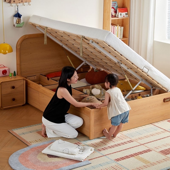 سرير التخزين المصنوع من الخشب الصلب مصمم للأطفال في مرحلة النمو، ويجمع بسلاسة بين الحرفية المتينة والتنظيم الذكي. هذا السرير ليس مجرد مكان للنوم؛ إنه حل أثاث متكامل يُساعد في الحفاظ على الغرفة مرتبة وواسعة ومليئة بالإمكانيات.