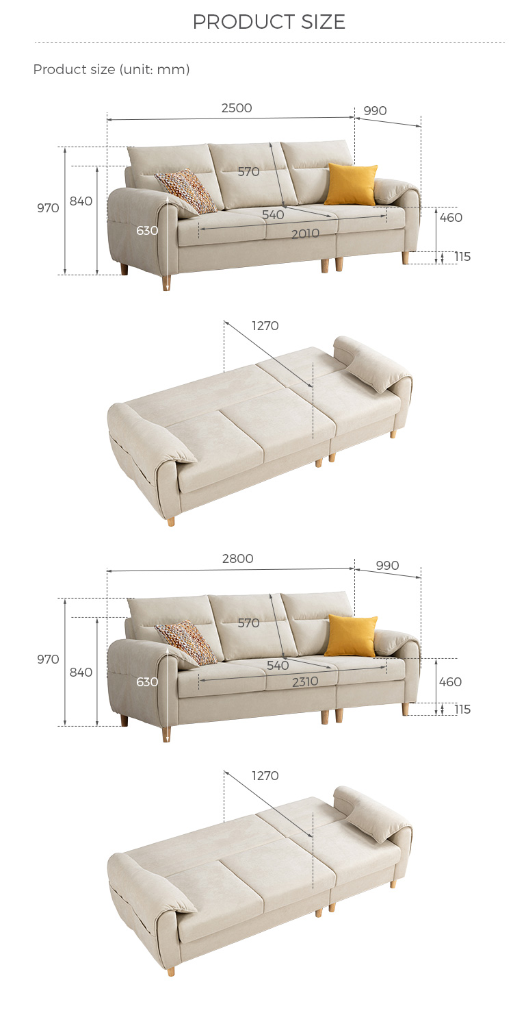7الحل الأمثل لتوفير المساحة - أريكة سرير قماشية ثلاثية المقاعد G283-B