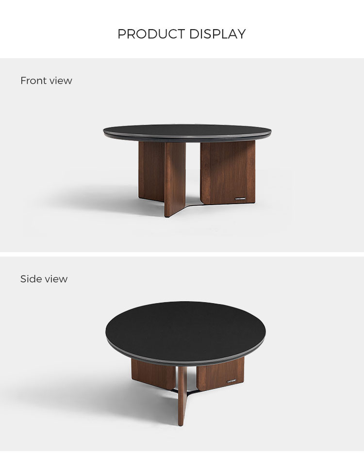 طاولة قهوة مستديرة بلون الجوز مع سطح من الحجر المتكلس UY2L-A |