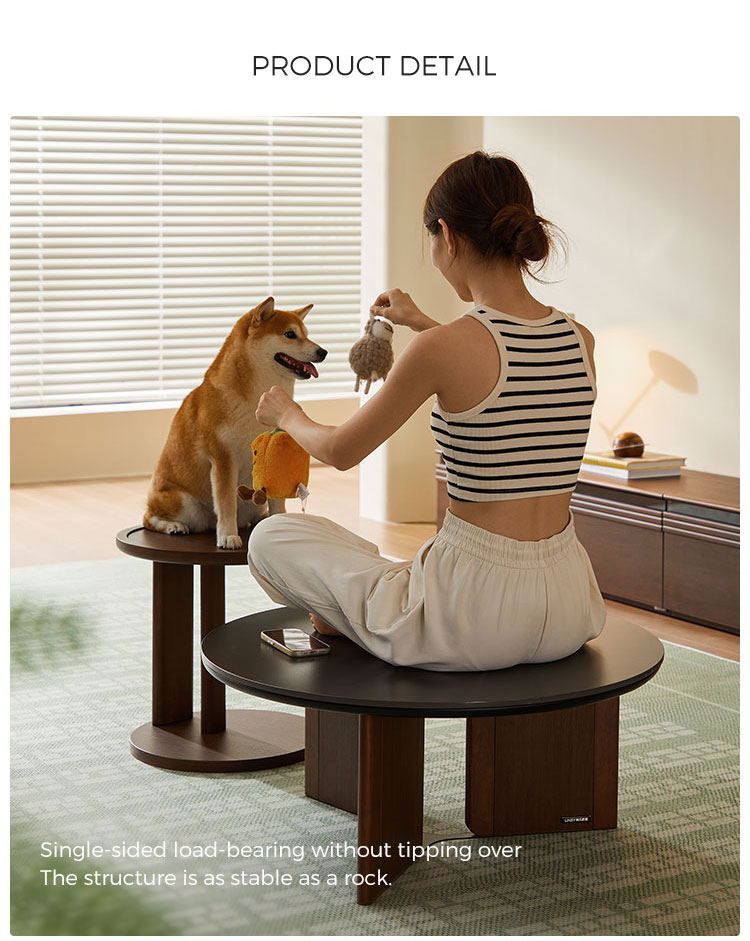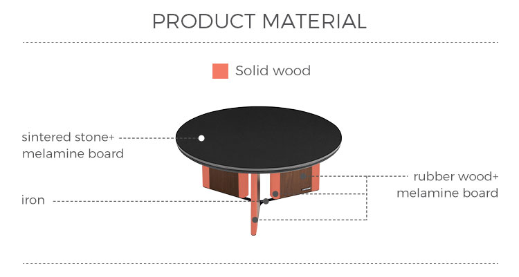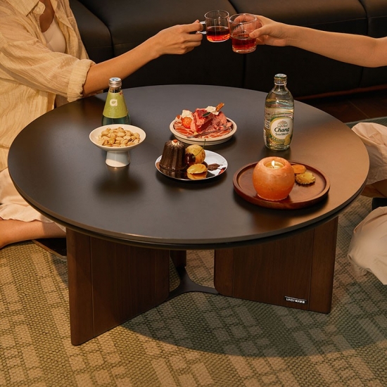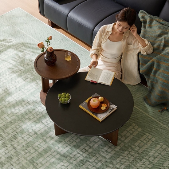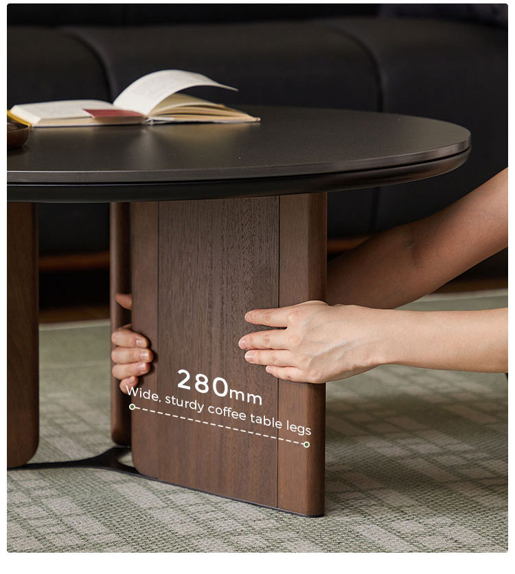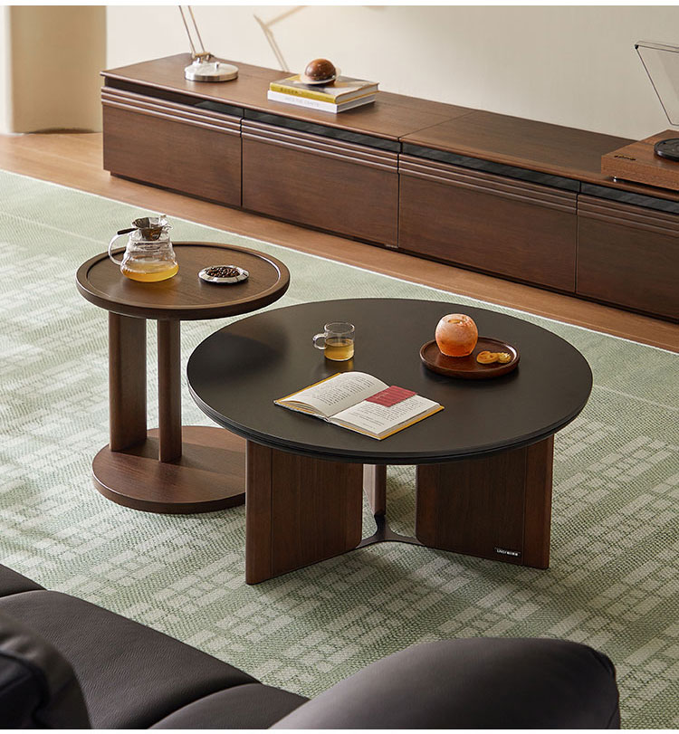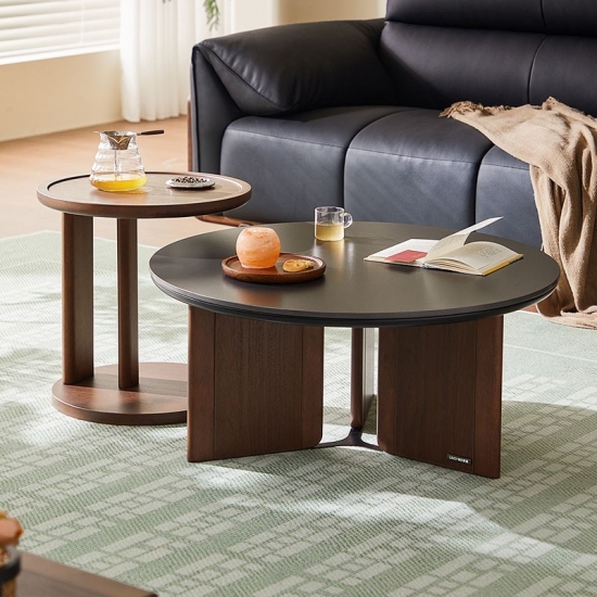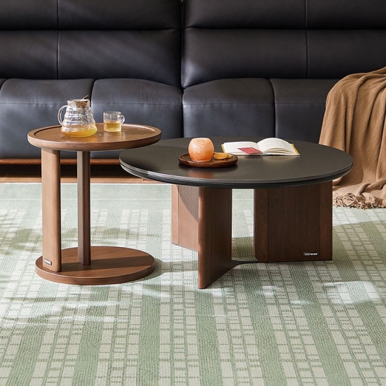 7طاولة قهوة مستديرة بلون الجوز مع سطح من الحجر المتكلس UY2L-A